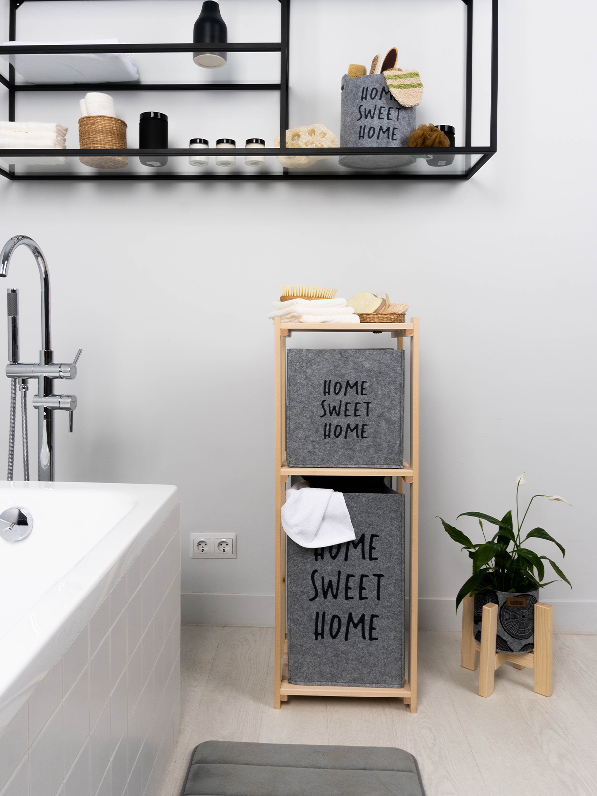 Компактный стеллаж в Скандинавском стиле в комплекте с органайзерами из войлока- лёгкий и универсальный. Комплект поставки: стеллаж деревянный в разобранном виде, комплект органайзеров — 2 шт., комплект крепёжной фурнитуры, инструкция по сборке. Выполнен из массива древесины — липы. При необходимости стеллаж можно покрыть морилкой, лаком или краской. Вместительные прочные органайзеры выполнены из экологичного материала — войлока, они легко чистятся и не впитывает запахи. Стеллаж легко собрать, он поместится в любом помещении, решив при этом проблему хранения различных мелочей. Компактное решение для функционального интерьера.